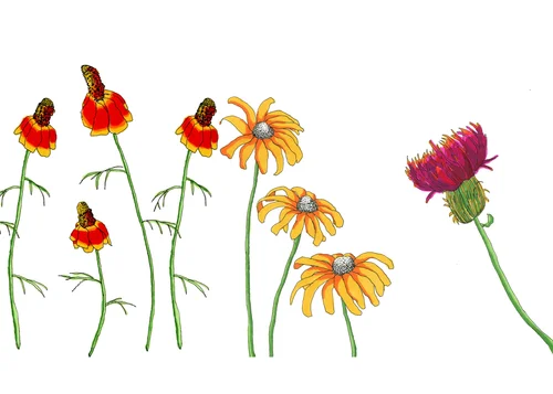 Inspired by the Texas hill country wildflowers, this series of illustrations explores the different conversations they might have. They are available as individual prints or as a set of greeting cards.